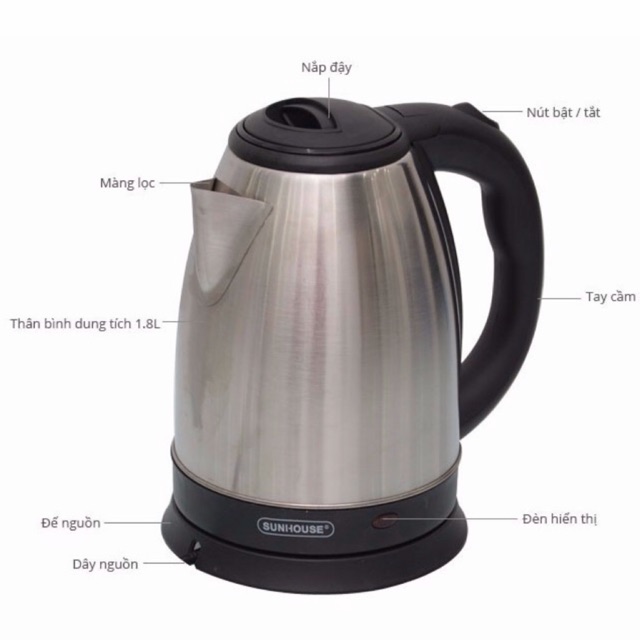 Thương hiệu: Sunhouse | Xem thêm các sản phẩm Bình đun siêu tốc của SunhouseMô tả ngắn