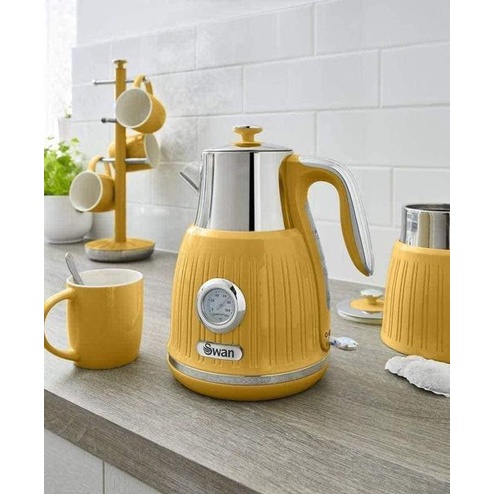 Ấm siêu tốc có đồng hồ đo nhiệt độ Swan retro màu vàng-cực kỳ sang chảnh ạNăm nay màu vàng lên ngôi, ấm siêu tốc Swan nhà em về cái nào bay ngay cái đó, không đợi đến ngày hôm sau: