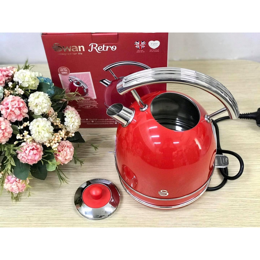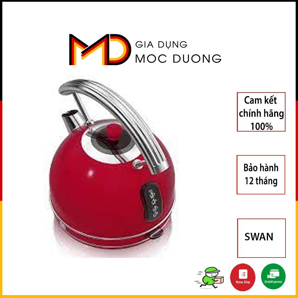 Ấm siêu tốc SWAN retro màu đỏ dung tích 1,8L [KÈM ẢNH THẬT]
