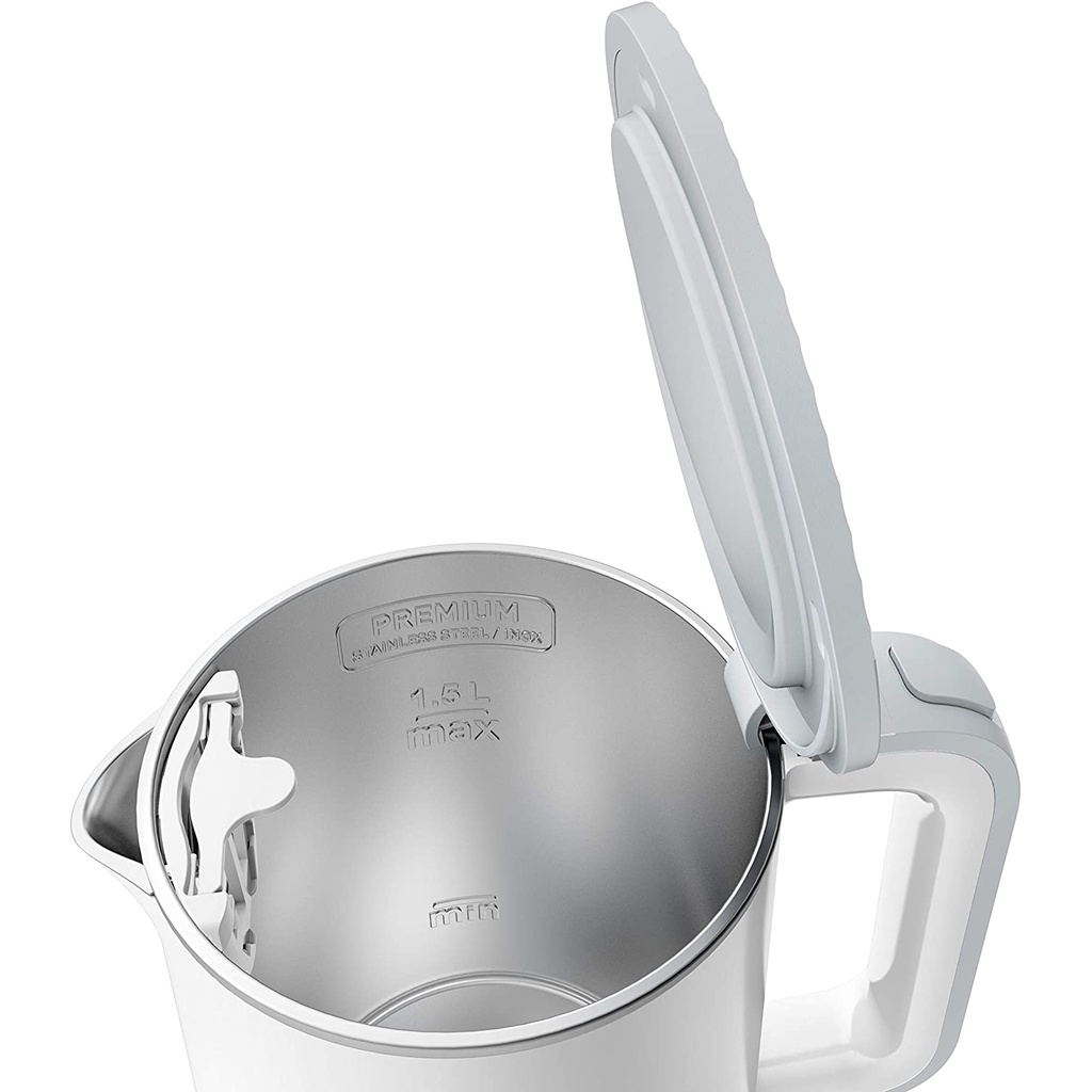- Ấm đun nước không dây phù hợp cho người dùng thuận tay phải và trái nhờ đế có thể xoay 360 °.