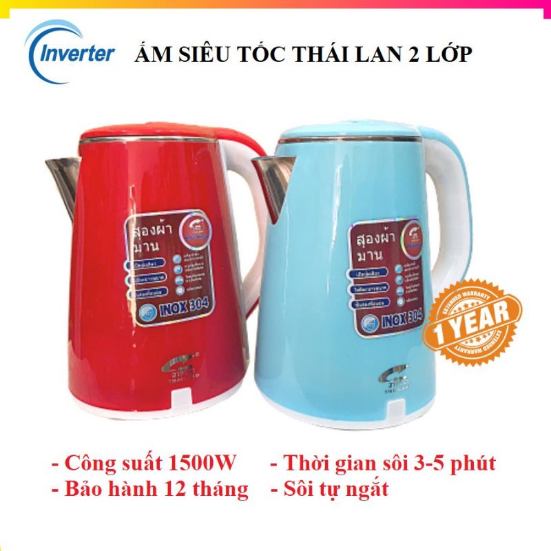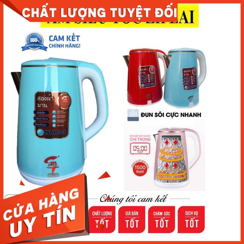 ẤM SIÊU TỐC THÁI LAN 2,5L 2 LỚP VỎ CHỐNG NÓNG - SHOP ONLILE