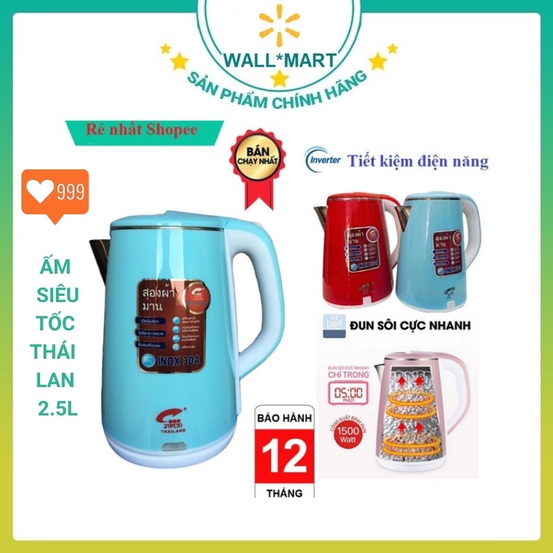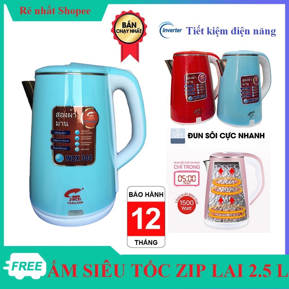 [HÀNG HOT ]🌿Ấm siêu tốc 2 lớp JipLai Thái Lan 2.5L