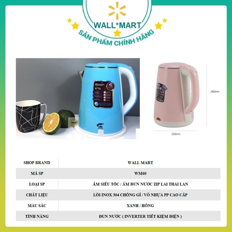 Thiết Bị Điện Gia Dụng > Đồ gia dụng nhà bếp > Ấm đun siêu tốc || Ấm siêu tốc thái lan 2 lớp đun nước 2 5 lít inviter chính hãng WALL MART WM60Còn hàng