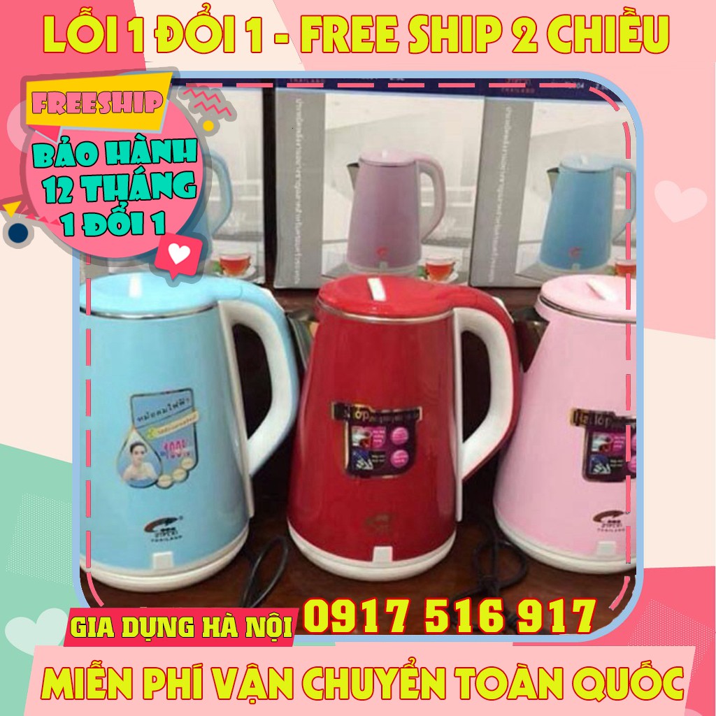 ấm siêu tốc thông minh tiết kiệm điện, ấm siêu tốc 2 lớp JipLai Thái Lan 2.5L