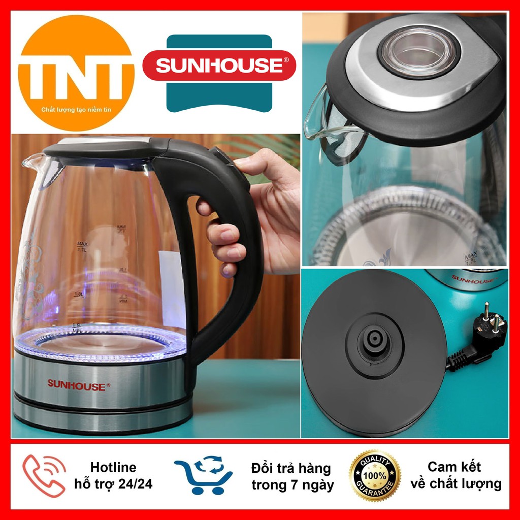 Ấm Siêu Tốc Thủy Tinh 1.7 L SUNHOUSE SHD1217, Đèn Led Sang Trọng