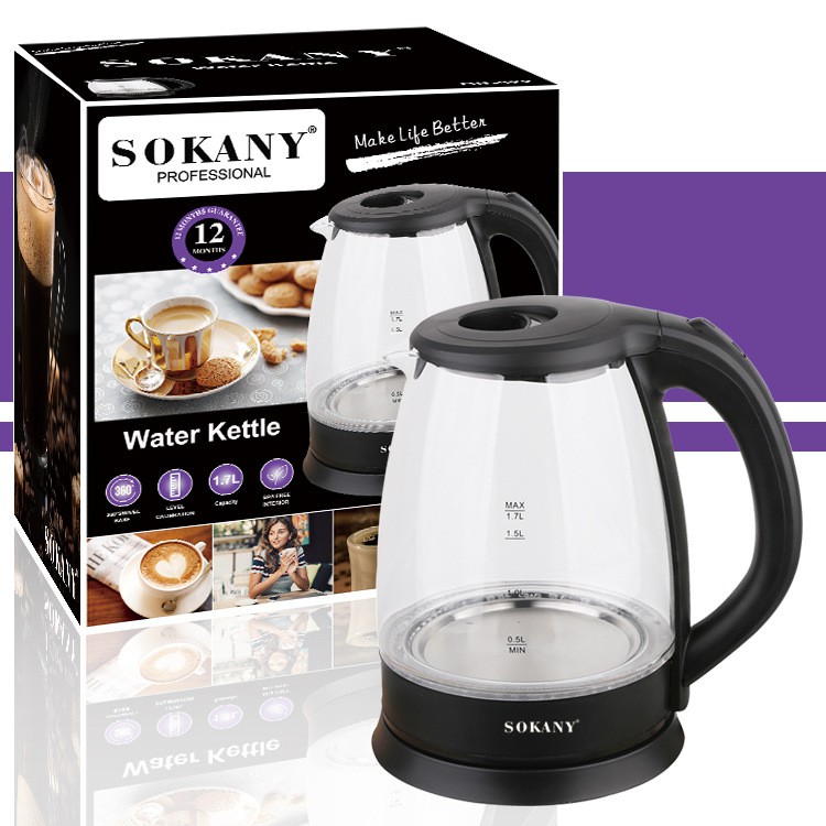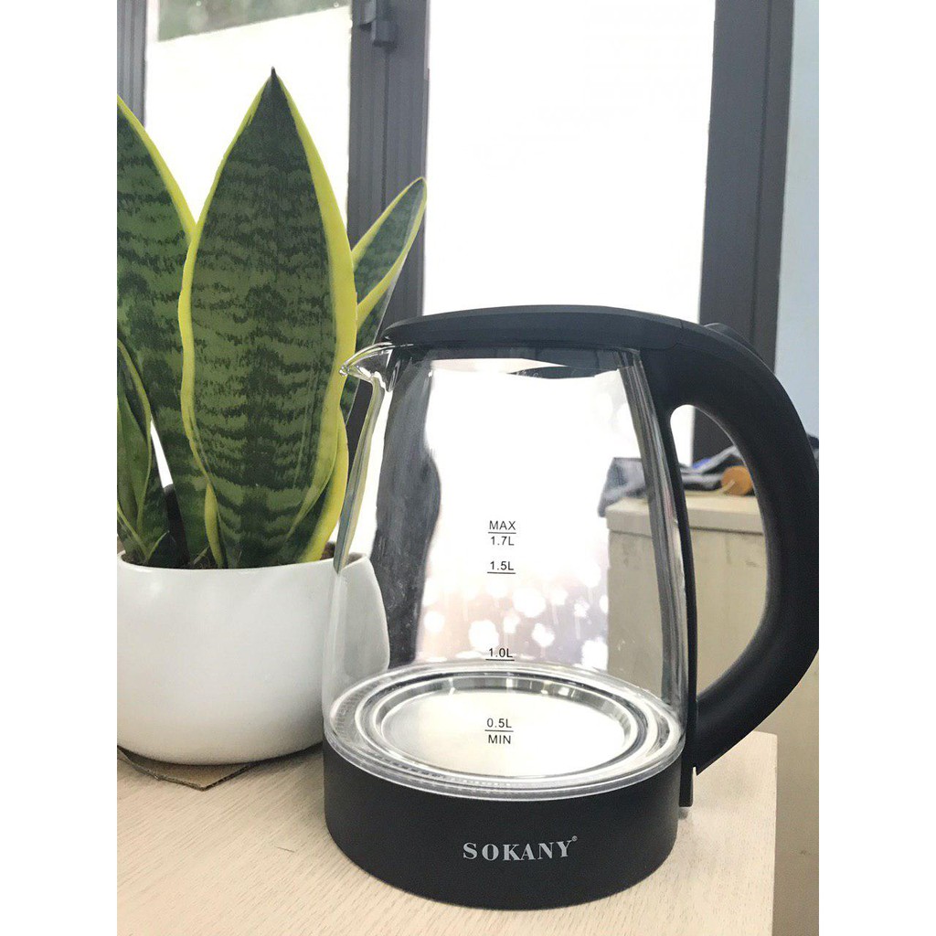 Ấm siêu tốc thủy tinh 1.7L SOKANY công suất mạnh 2200W có đèn led chịu nhiệt tốt [ BẢO HÀNH 1 NĂM ]