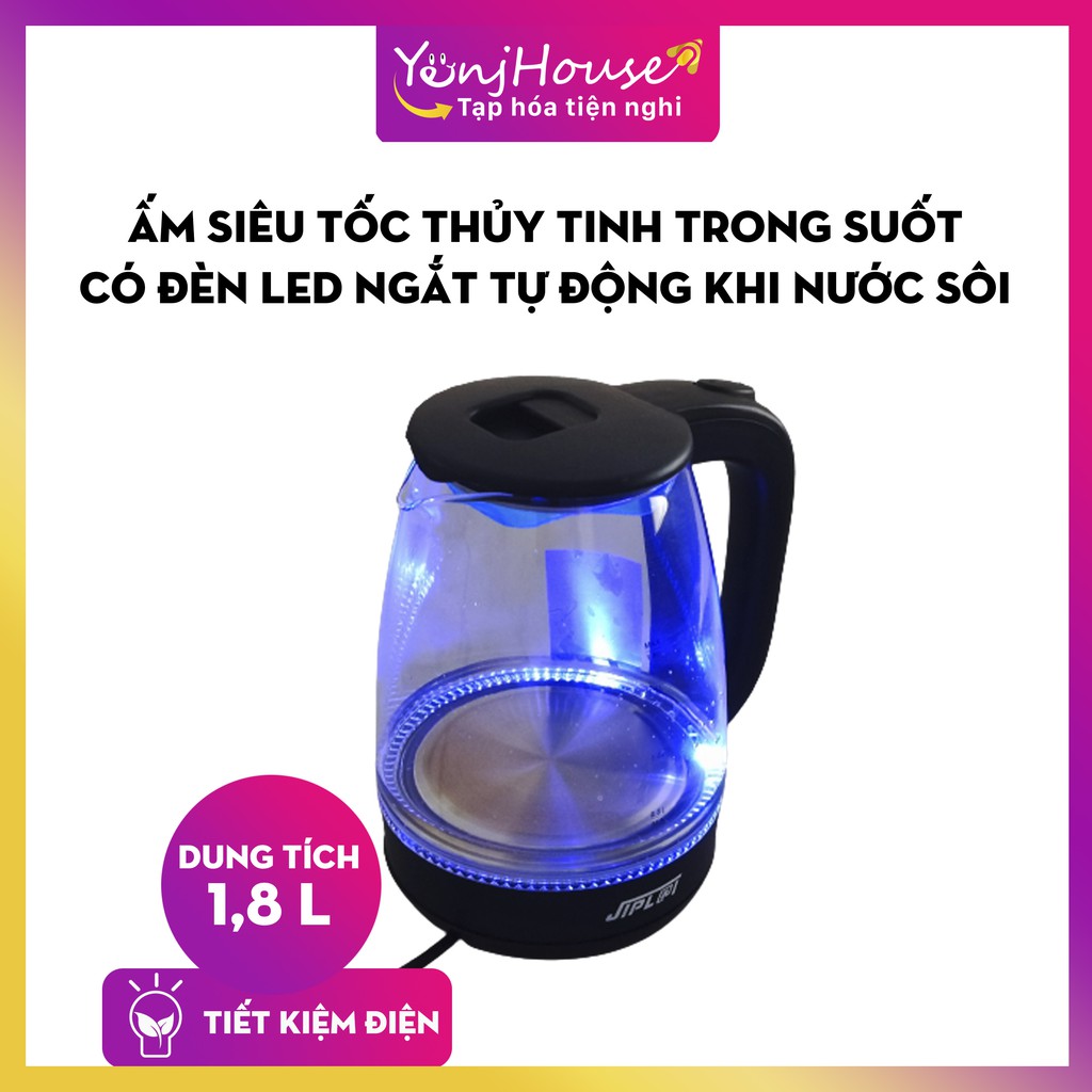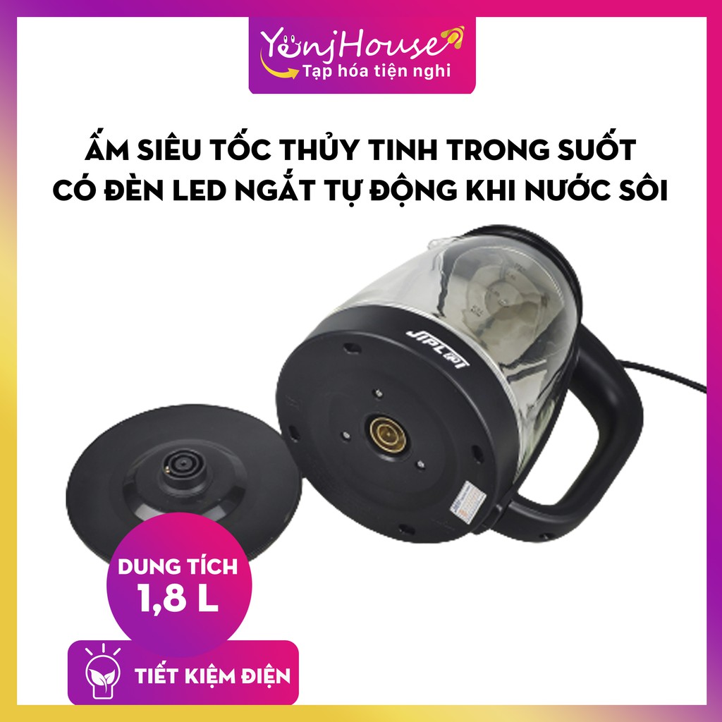 Ấm Siêu Tốc Thủy Tinh 1.8L JIPL@I ST21 Thiết Kế Hiện Đại Trong Suốt có đèn LED, 1 đổi 1 trong vòng 7 ngày, BH 12 tháng