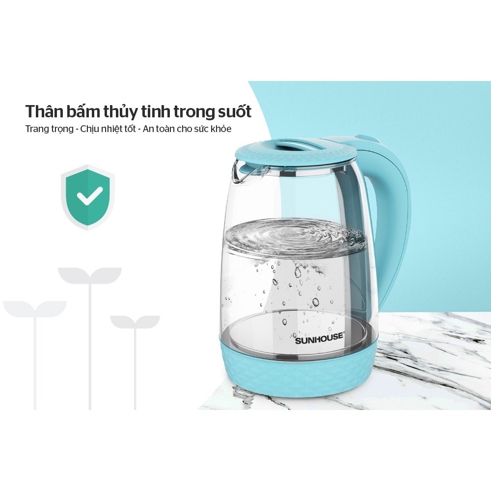[Mã ELHADEV giảm 4% đơn 300K] Ấm siêu tốc thủy tinh 1.8L SUNHOUSE SHD1215