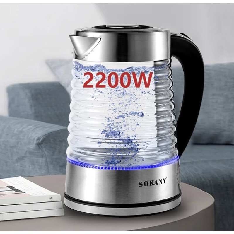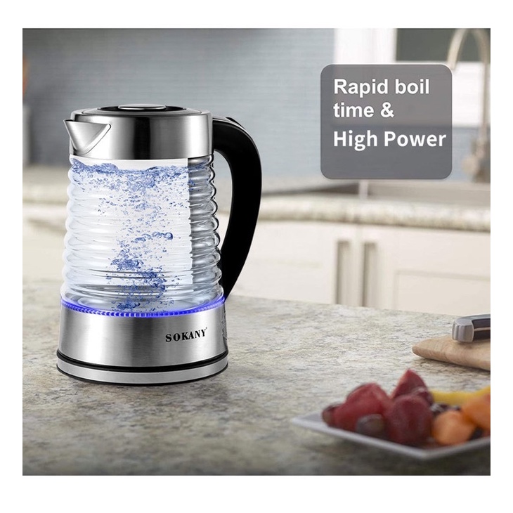 Ấm siêu tốc thuỷ tinh ( 2,2 lít, inox 304) SONAKY