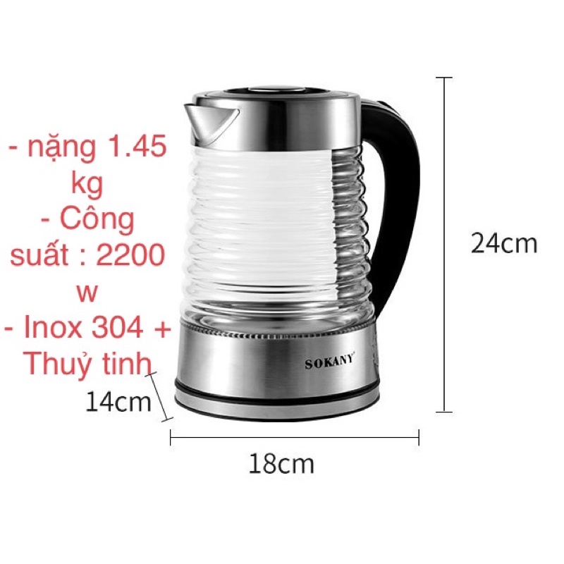 * Ấm siêu tốc THUỶ TINH SONAKY* Thương Hiệu : Sonaky