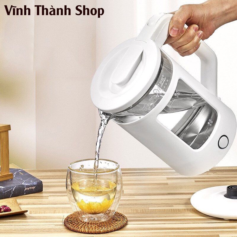 1, Ấm được thiết kế bằng thủy tinh trong suất, dễ dàng quan sát mực nước bên trong ấm, từ đó dễ dàng vệ sinh và lau chùi đảm bảo an toàn sức khỏe