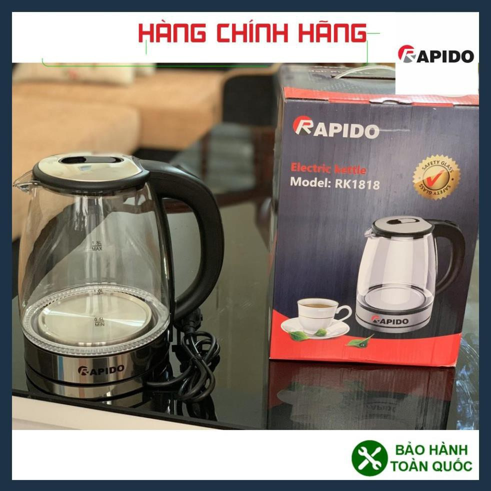 Thiết Bị Điện Gia Dụng > Đồ gia dụng nhà bếp > Ấm đun siêu tốc || Ấm siêu tốc thủy tinh, bình đun siêu tốc thủy tinh, thân bình trong suốt Rapido RK1818 (1,8 Lít) ()Còn hàng