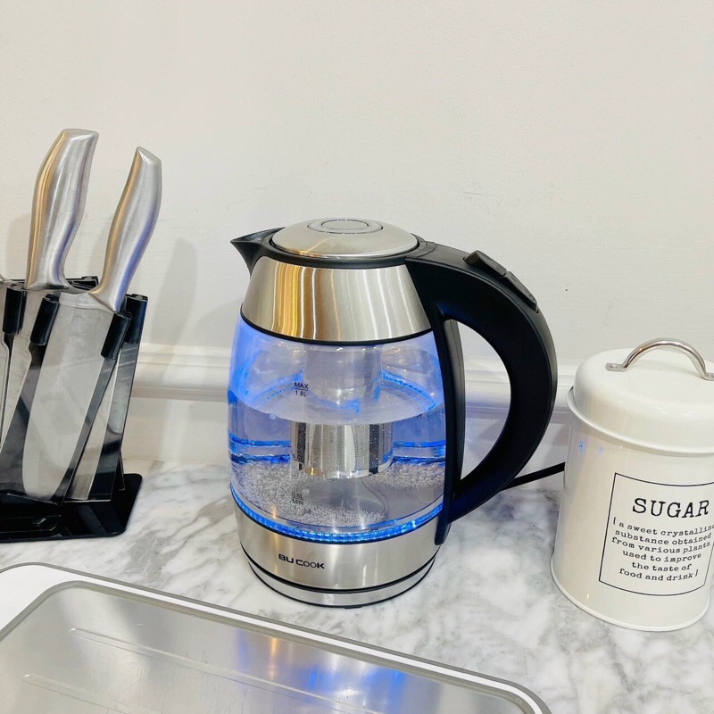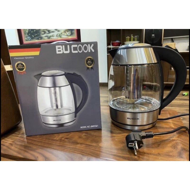Thiết Bị Điện Gia Dụng > Đồ gia dụng nhà bếp > Ấm đun siêu tốc || Ấm siêu tốc thuỷ tinh BU COOK kèm lõi lọc trà inoxCòn hàng