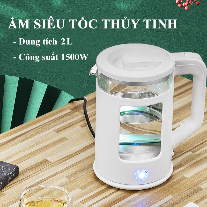 Ấm siêu tốc thủy tinh cao cấp dung tích 2.3L Bình đun nước siêu tốc thủy tinh an toàn tiện lợi có tấm nhựa cách nhiệt 88