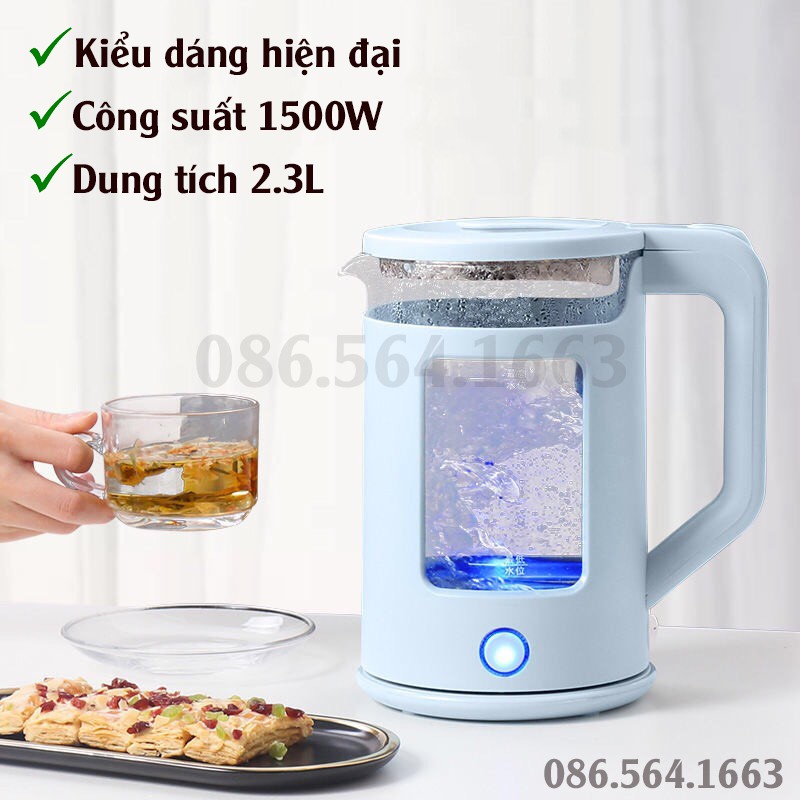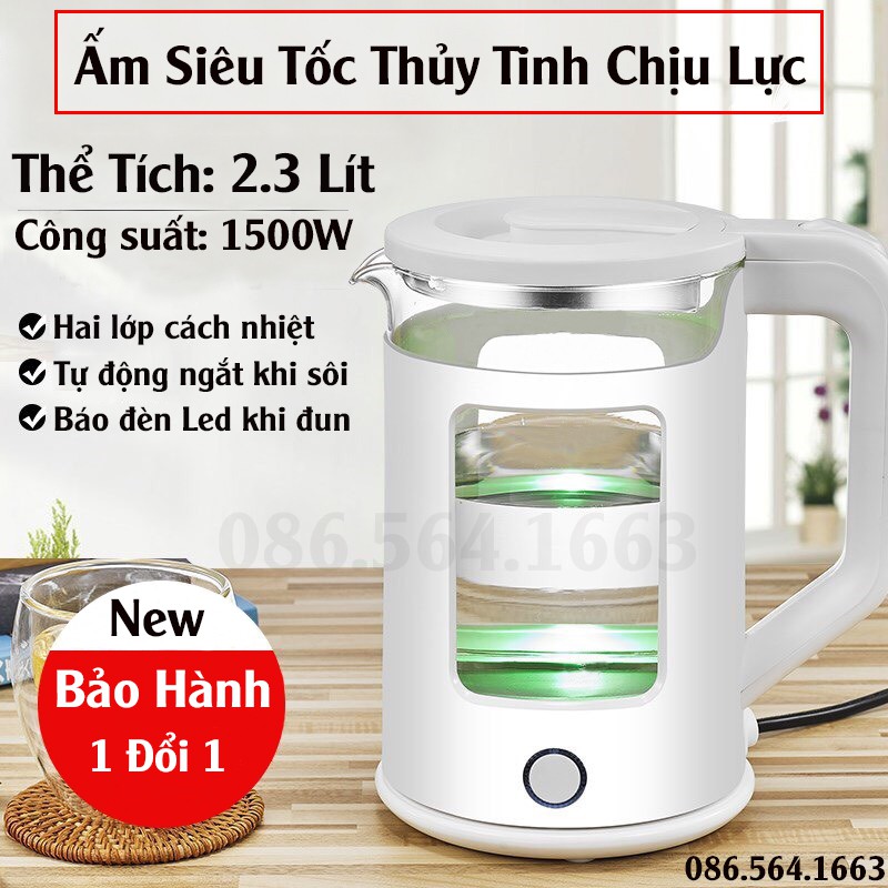 Ấm Siêu Tốc Thủy Tinh Công Suất Lớn 1500W Dung Tích 1,8 -2,3 Lít - Ấm Đun Nước Thủy Tinh Có Chức Năng Giữ Nhiệt