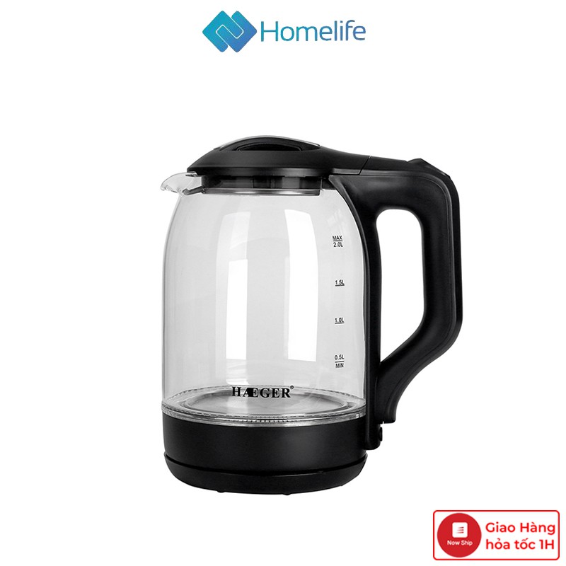 Thiết Bị Điện Gia Dụng > Đồ gia dụng nhà bếp > Ấm đun siêu tốc || Ấm siêu tốc thủy tinh HAEGER 2 lít, bình đun siêu tốc thủy tinh trong suốt công suất 2000WCòn hàng