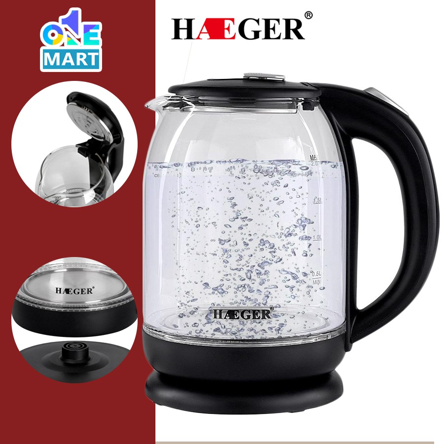 Ấm siêu tốc thủy tinh HAEGER HG-7839 dung tích 2L công suất đun lên đến 2000W đun sôi chỉ từ 4 phút