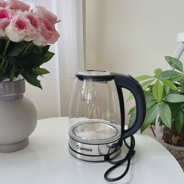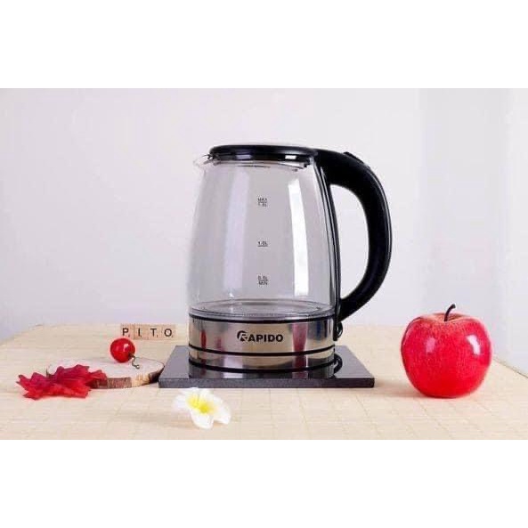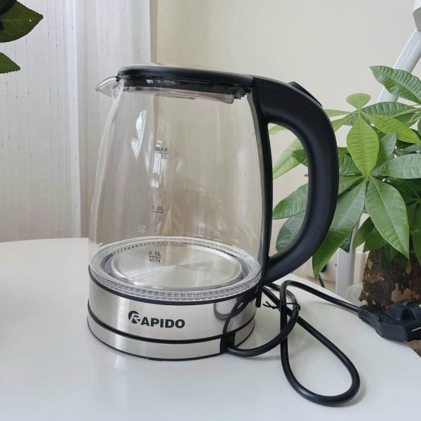 Thiết Bị Điện Gia Dụng > Đồ gia dụng nhà bếp > Ấm đun siêu tốc || Âm siêu tốc thủy tinh hãng RapidoCòn hàng