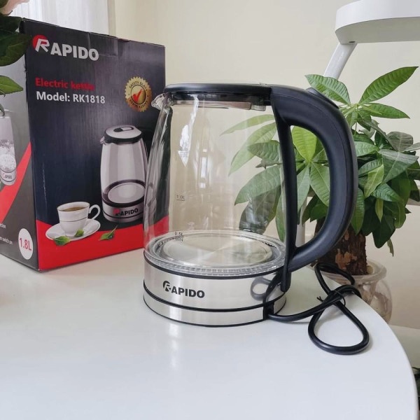 ♻️ Ấm đun Rapido RK1818 công suất 1800W đun sôi nước cực nhanh. Đế tiếp điện cao cấp cho khả năng truyền điện tốt, đảm bảo tuổi thọ của bình.
