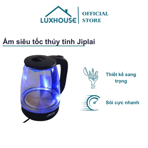 Ấm siêu tốc thủy tinh Jiplai Thái Lan 1.8L Thiết Kế Hiện Đại Trong Suốt có đèn LED,1 đổi 1 trong vòng 7 ngày,BH 12 tháng