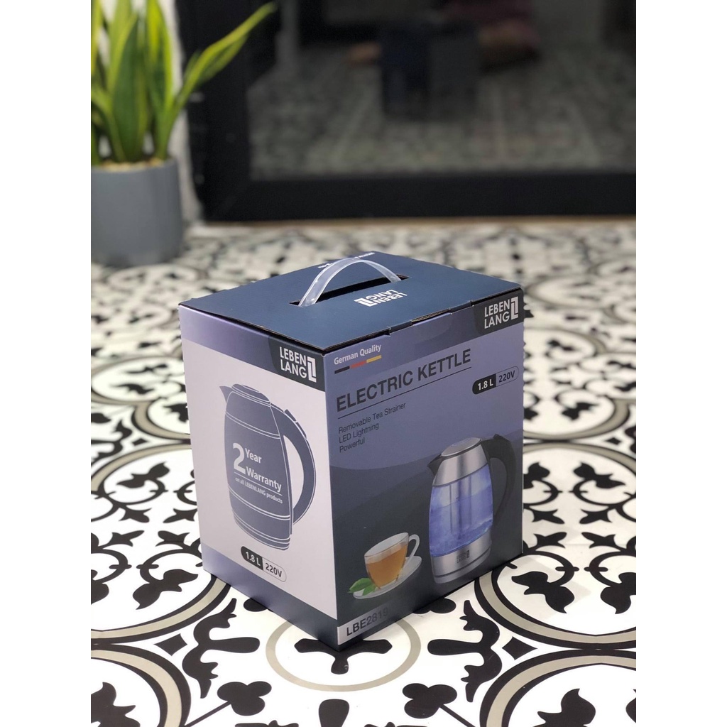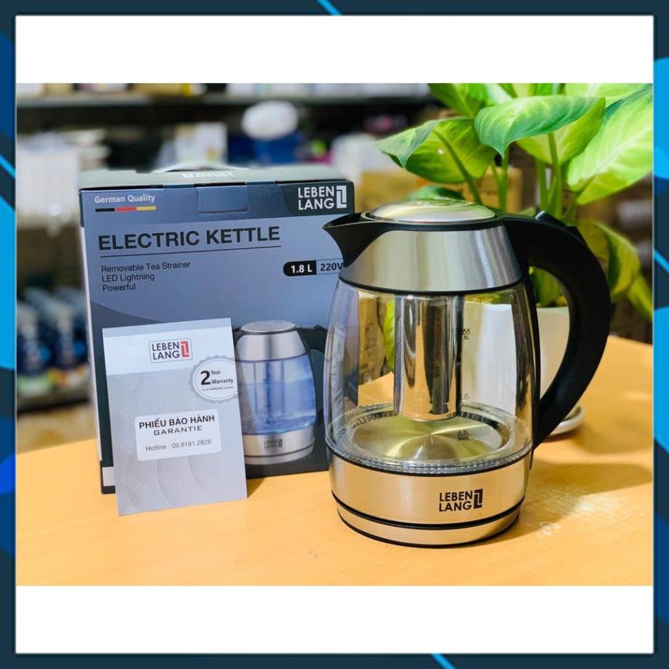 Ấm siêu tốc thuỷ tinh kèm lõi lọc trà inox Lebenlang 1.8L LBE2819 Đức Chính hãng BH 24 tháng