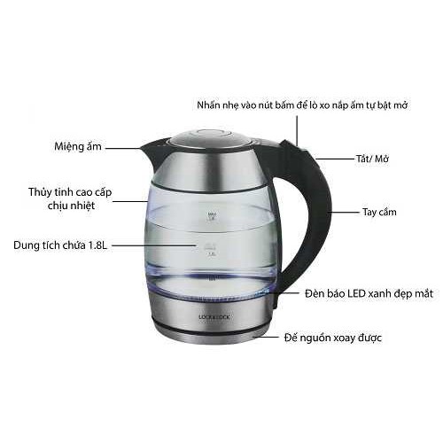 Giới thiệu Ấm siêu tốc thủy tinh Lock&Lock EJK418SLV 1.8L 1850W