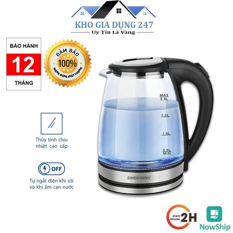 Thiết Bị Điện Gia Dụng > Đồ gia dụng nhà bếp > Ấm đun siêu tốc || Ấm siêu tốc thuỷ tinh Lock&Lock | Leben Lang | Chefman 1.8L [Chính hãng - Bảo hành 12 tháng]Còn hàng