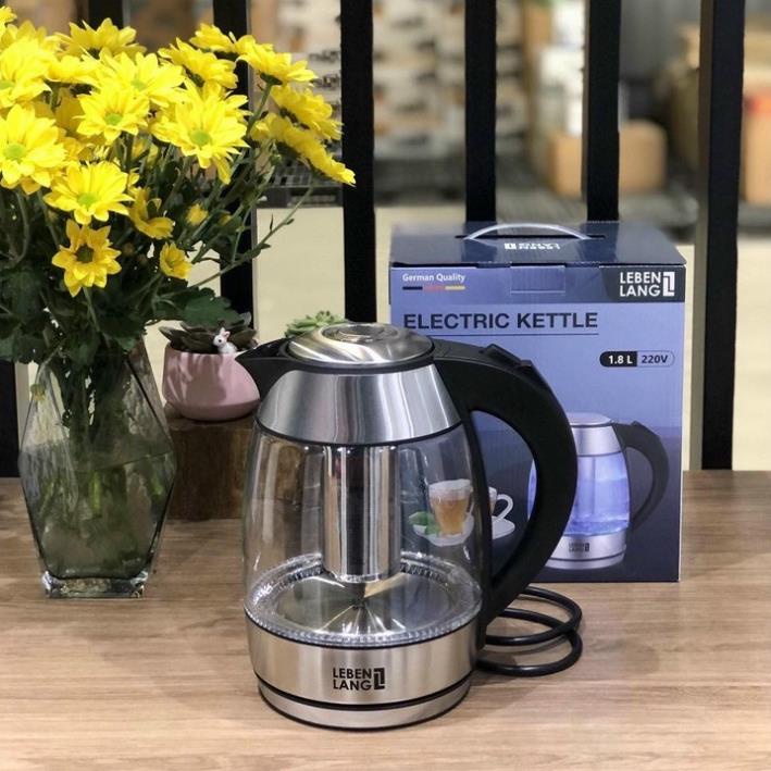 Ấm siêu tốc thủy tinh LEBENLANG LBE2819 1.8L ấm đun nước có lõi lọc trà bảo hành 24 tháng