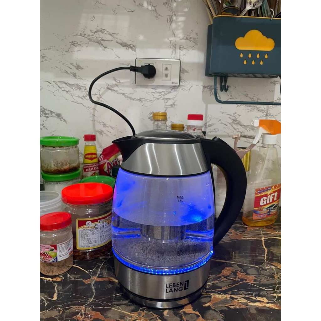 Ấm siêu tốc thủy tinh Lebenlang 1.8l – Hàng tiêu chuẩn Đức