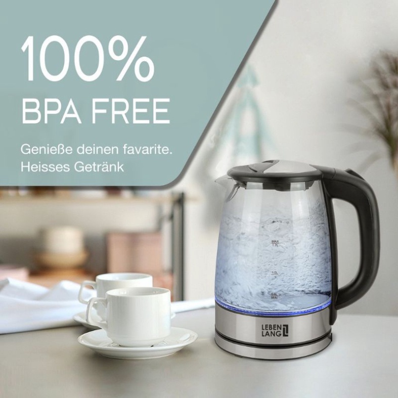 Ấm siêu tốc thủy tinh Lebenlang 1.8L