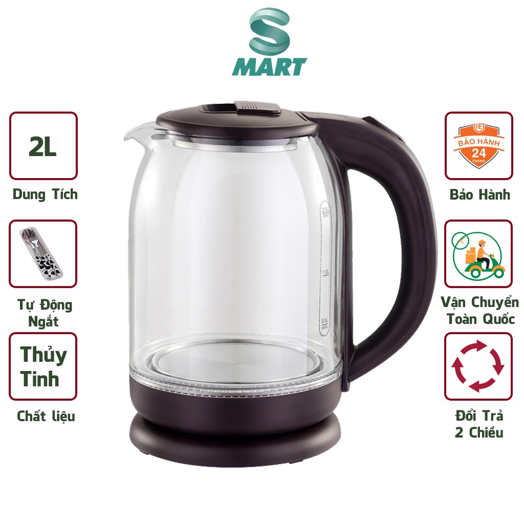 - Chất liệu ấm siêu tốc thủy tinh: Thủy tinh, Inox, nhựa PP cao cấp