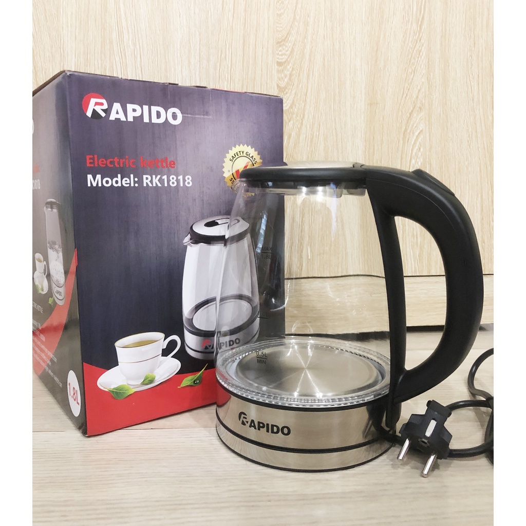 Ấm siêu tốc thủy tinh Rapido RK1818, Ấm điện siêu tốc 1.8L Hàng Chính Hãng Công Suất 1800W, Sang Trọng, Tiết Kiệm Điện