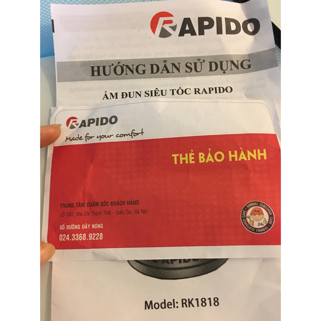 Giới thiệu Ấm siêu tốc thủy tinh Rapido RK1818, thiết kế đẹp tinh tế, công suát lớn nhanh sôi, bảo hành chính hãng 6 tháng