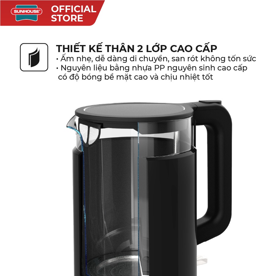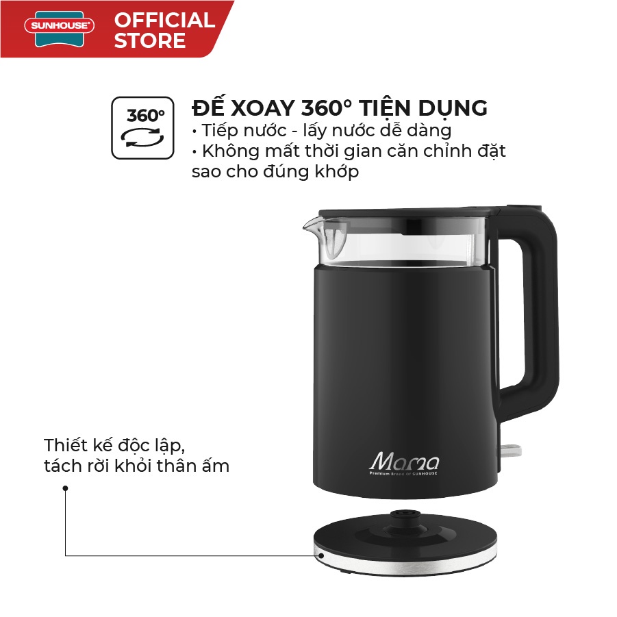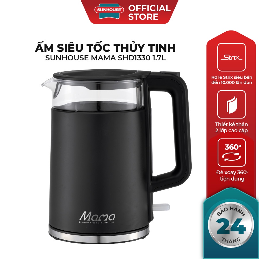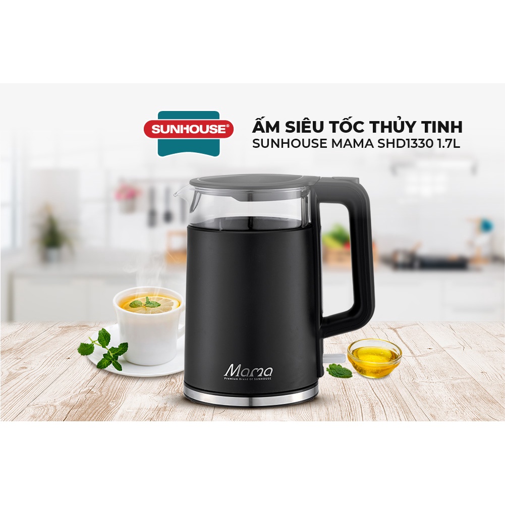 Ấm siêu tốc SUNHOUSE MAMA thủy tinh 1.7L SHD1330KIỂU DÁNG HIỆN ĐẠI – TINH TẾ - TIỆN DỤNG