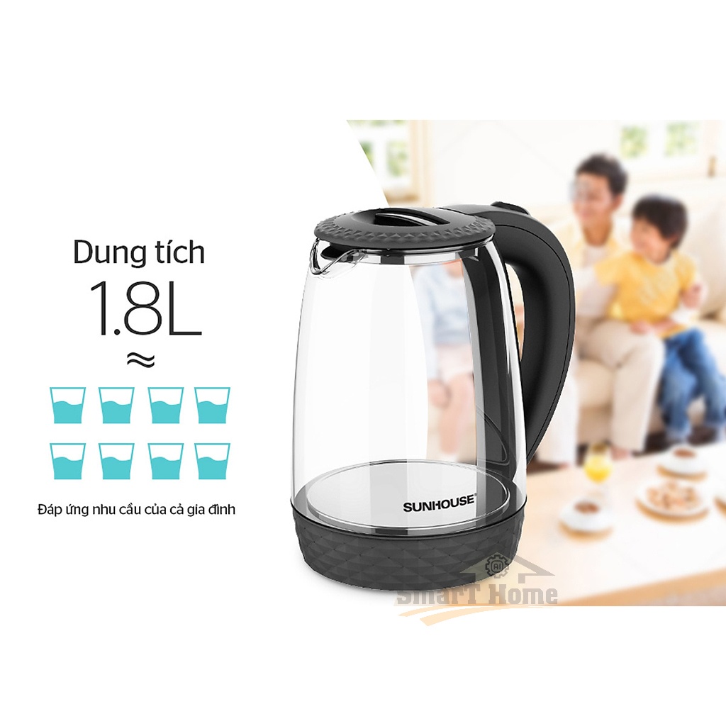 Ấm Siêu Tốc Thủy Tinh Sunhouse SHD1215 - Ấm Đun Nước Siêu Tốc Công Suất 1800W Dung Lượng 1,8L - Bảo Hành 12 Tháng