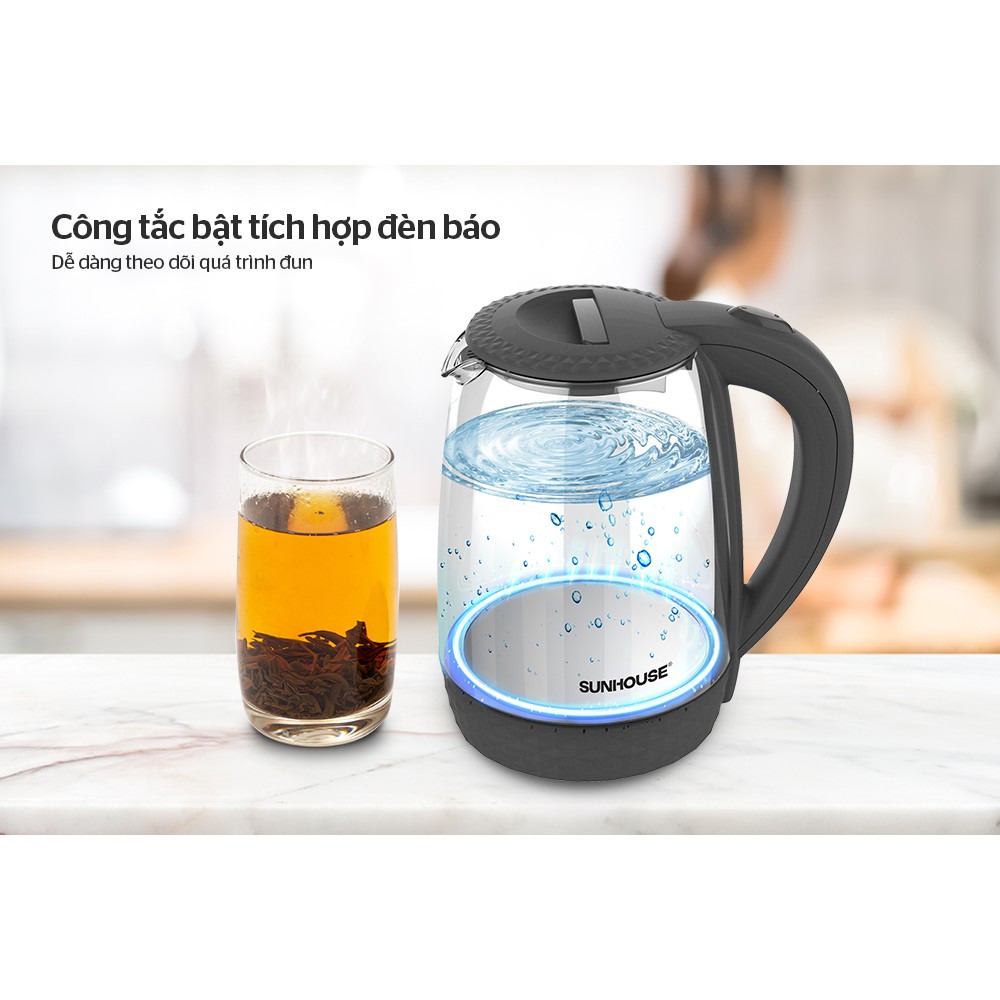 Ấm siêu tốc thủy tinh SUNHOUSE SHD1215B - Bảo hành chính hãng 12 tháng