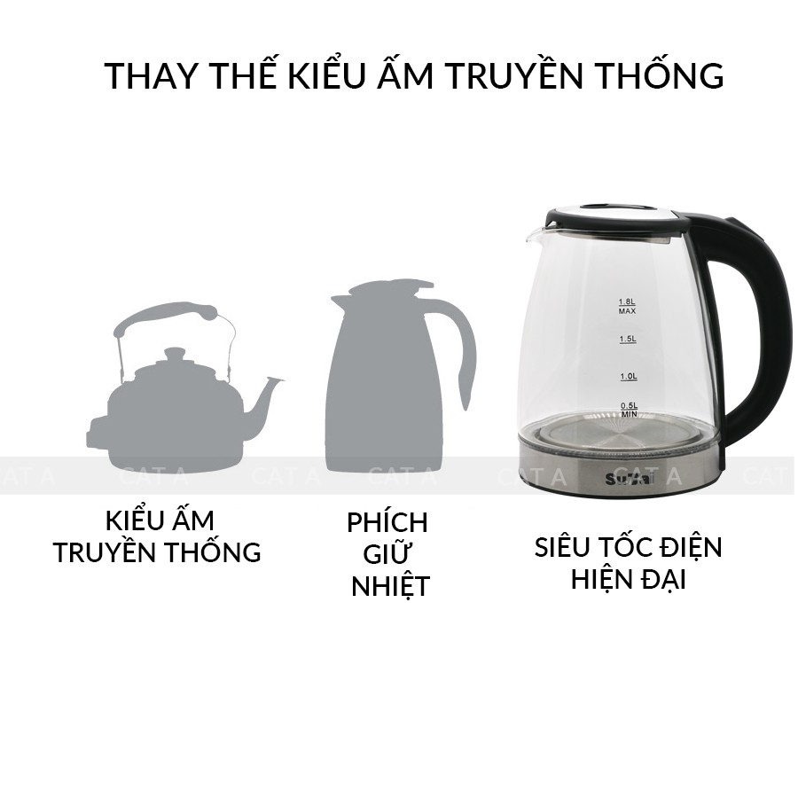 📣 𝑻𝒉𝒊𝒆̂́𝒕 𝒌𝒆̂́ 𝒕𝒊𝒏𝒉 𝒕𝒆̂́ 𝒗𝒂̀ 𝒔𝒂𝒏𝒈 𝒕𝒓𝒐̣𝒏𝒈- Ấm siêu tốc thủy tinh SUTAI sang trọng, tinh tế với thiết kế thân bình được làm bằng thủy tinh trong suốt cao cấp có khả năng chịu nhiệt tốt và an toàn tuyệt đối cho sức khỏe của người sử dụng.