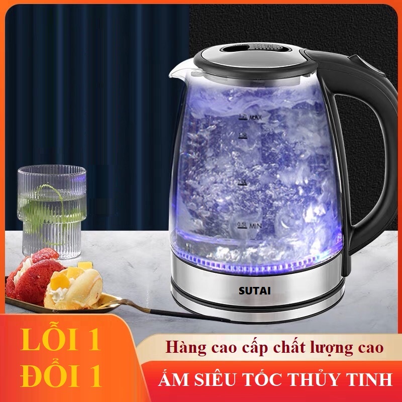 Ấm siêu tốc thủy tinh trong suốt CAO CẤP SUTAI Dung tích 2.0L - Ấm thủy tinh siêu tốc, tiết kiệm điện, có đèn LED !