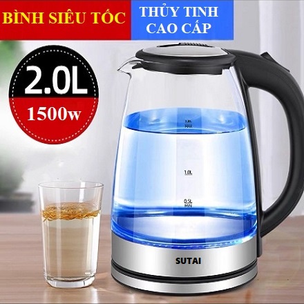 Ấm siêu tốc thủy tinh trong suốt CAO CẤP SUTAI Dung tích 2.0L - Ấm thủy tinh siêu tốc, tiết kiệm điện, có đèn LED !- Ấm siêu tốc thủy tinh SUTAI sang trọng, tinh tế với thiết kế thân bình được làm bằng thủy tinh trong suốt cao cấp có khả năng chịu nhiệt tốt và an toàn tuyệt đối cho sức khỏe của người sử dụng.