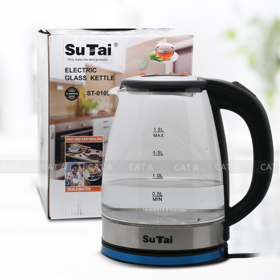 - Ấm siêu tốc thủy tinh SUTAI sang trọng, tinh tế với thiết kế thân bình được làm bằng thủy tinh trong suốt cao cấp có khả năng chịu nhiệt tốt và an toàn tuyệt đối cho sức khỏe của người sử dụng.