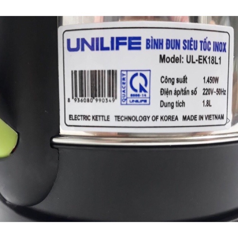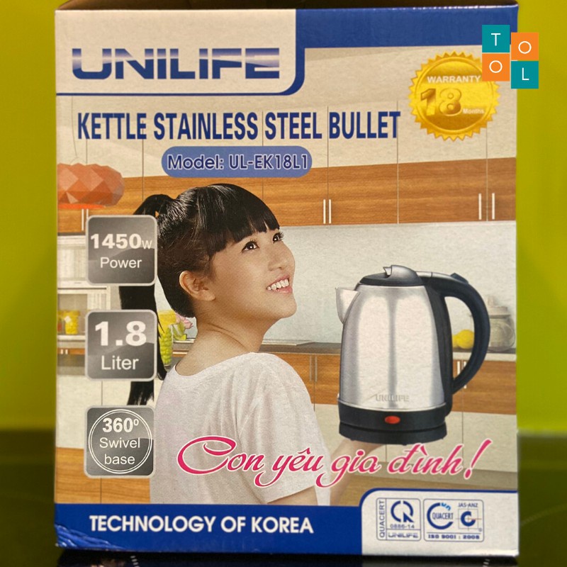- Ấm siêu tốc Unilife 1.8L thiết kế hiện đại, tiện dụng, an toàn, xứng đáng có mặt trong gia đình Việt!