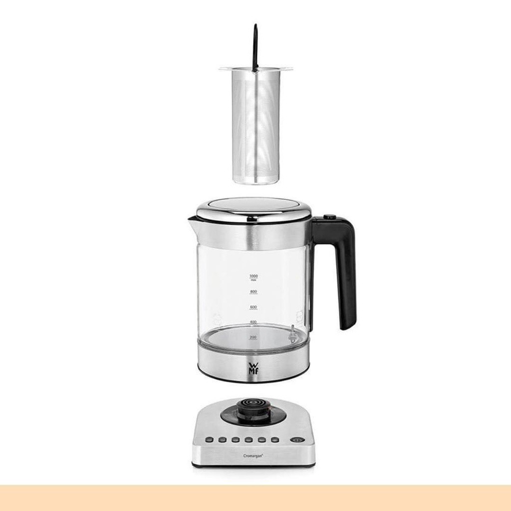 - Ấm siêu tốc thủy tinh WMF có bộ lọc nước vôi có thể tháo rời, có thể giặt được.