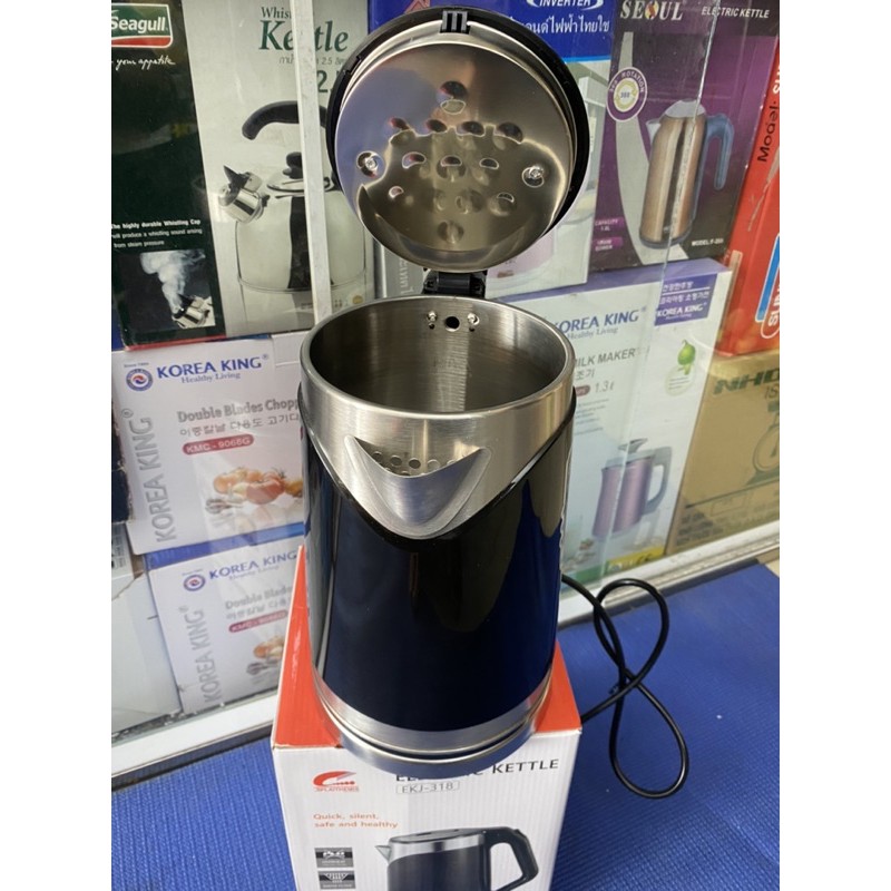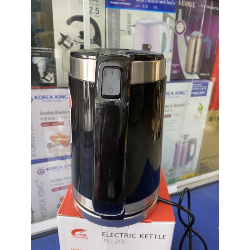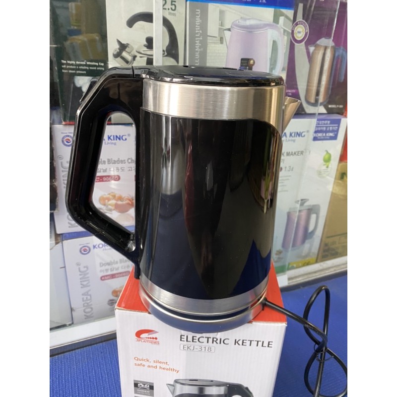 MÔ TẢ SẢN PHẨMĐẶC ĐIỂM NỔI BẬT: -Đun nước sôi nhanh chóng: Ấm siêu tốc JIPLAI EKJ - 318 đun sôi nước nhanh chóng, chỉ từ 3-5 phút sau khi bật nút ON. -Nút đun được thiết kế có đèn báo ở phía đáy bình. Rất an toàn và tiện dụng ngay cả vào ban đêm. -Dung tích 2 lít : Ấm có dung tích 2 lít nên đáp ứng mọi nhu cầu sử dụng nước nóng như pha trà, café, pha mỳ, pha sữa,…phù hợp với gia đình đông người hoặc nhu cầu đun thường xuyên. -Chất liệu Inox 304 an toàn cho sức khỏe, không bị han rỉ trong suốt quá trình sử dụng, dễ vệ sinh và không chứa các hóa chất gây hại, bảo đảm sức khỏe cho người dùng. Nắp ấm lót inox đảm bảo không có mùi nhựa trong mọi trường hợp. Gia đình có thể hoàn toàn an tâm sử dụng sản phẩm. -Bên trong: Lòng ấm bằng inox 304 an toàn tuyệt đối giúp nấu nước nhanh sôi hơn, không bị bám cặn và không tiết ra chất độc hại ở nhiệt độ cao nên an toàn cho sức khỏe. -Nắp và tay cầm tiện lợi: Sản phẩm có nắp rộng, dễ dàng đổ nước vào. Ngoài ra, với nút bấm mở trên tay cầm giúp người dùng dễ dàng thao tác. Tay cầm được làm bằng nhựa chống nóng, chắc chắn và vừa tay, giúp người dùng dễ nhấc đặt bình và di chuyển. -An toàn khi sử dụng: Ấm siêu tốc JIPLAI EKJ - 318 có thiết bị chống sốc nhiệt, tự động ngắt điện khi nước sôi hoặc cạn nước. THÔNG TIN CHUNG: Hãng sản xuất: JIPLAI Xuất xứ: Thái Lan Model: EKJ-318 Bảo hành: 12 tháng