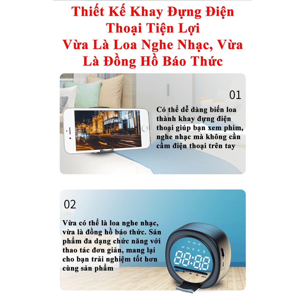 Tên sản phẩm: Loa Bluetooth mini Q12 xinh xắnLoa bluetooth kiêm đồng hồ Q12 sở hữu thiết kế đẹp mắt cùng tính năng đồng hồ thông minh
