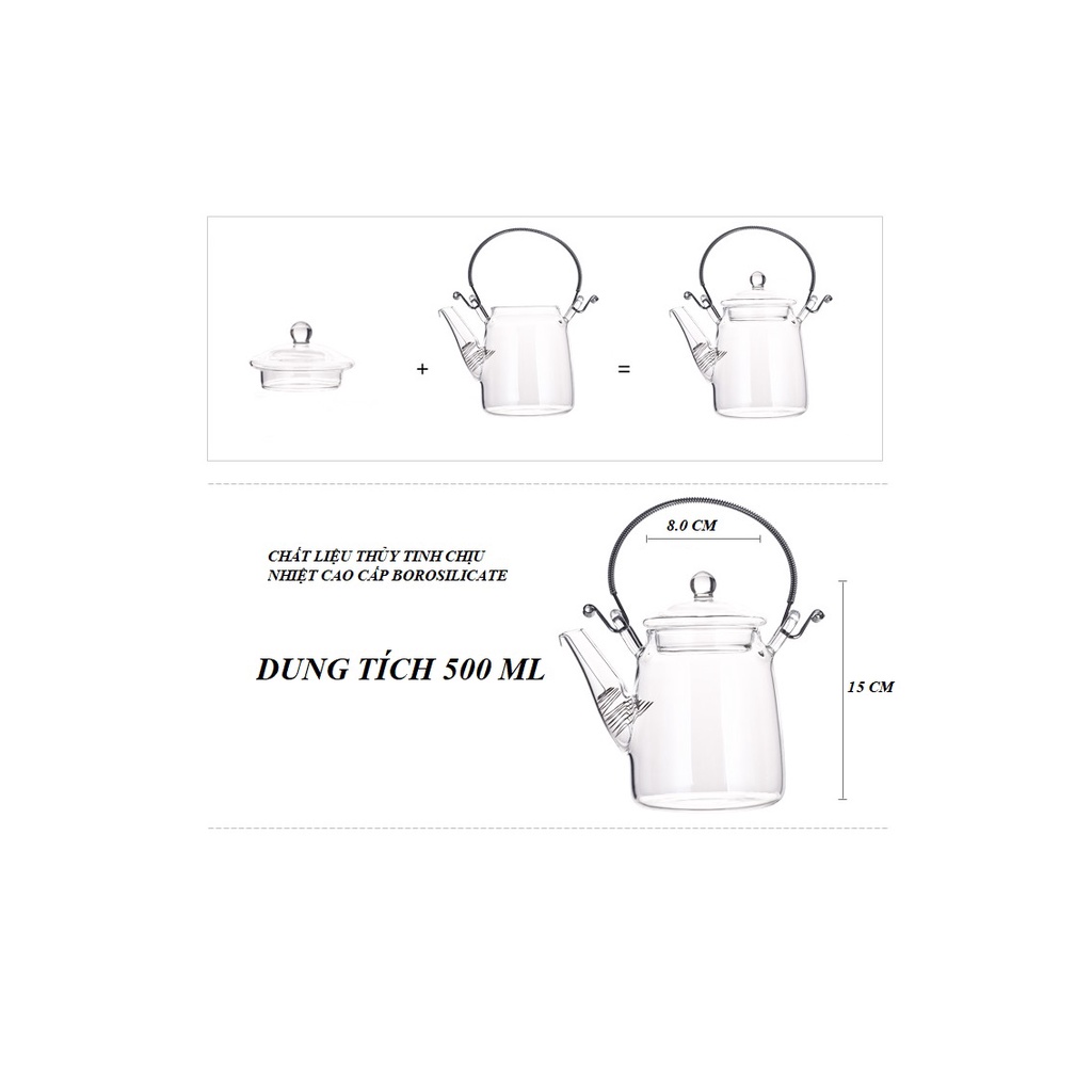 Ấm Thủy Tinh Pha Trà có lưới lọc inox 304 (500 ml)