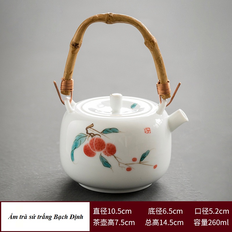 Ấm Trà Sứ Trắng Bạch Định pha trà đạo 260 mlMô tả sản phẩm: