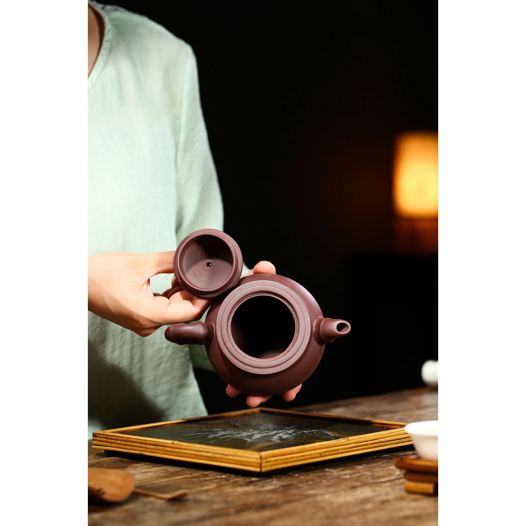 Ấm Tử Sa Nghi Hưng Bán Ngõa 210 ml (Tử Nê)+ Ấm đẹp, chất đất đanh, mầu ấm tươi, vòi nước dòng chảy tốt.