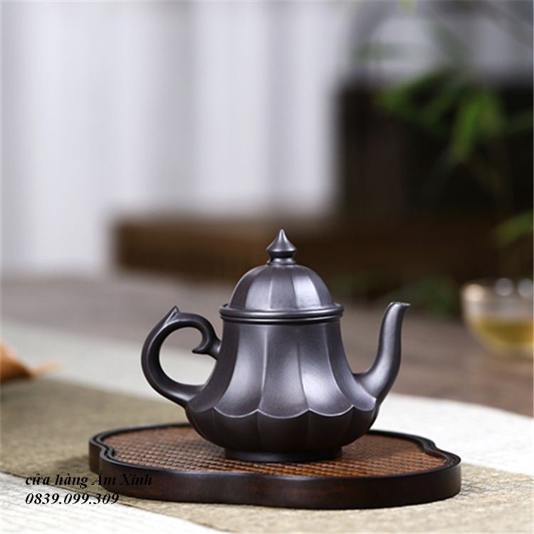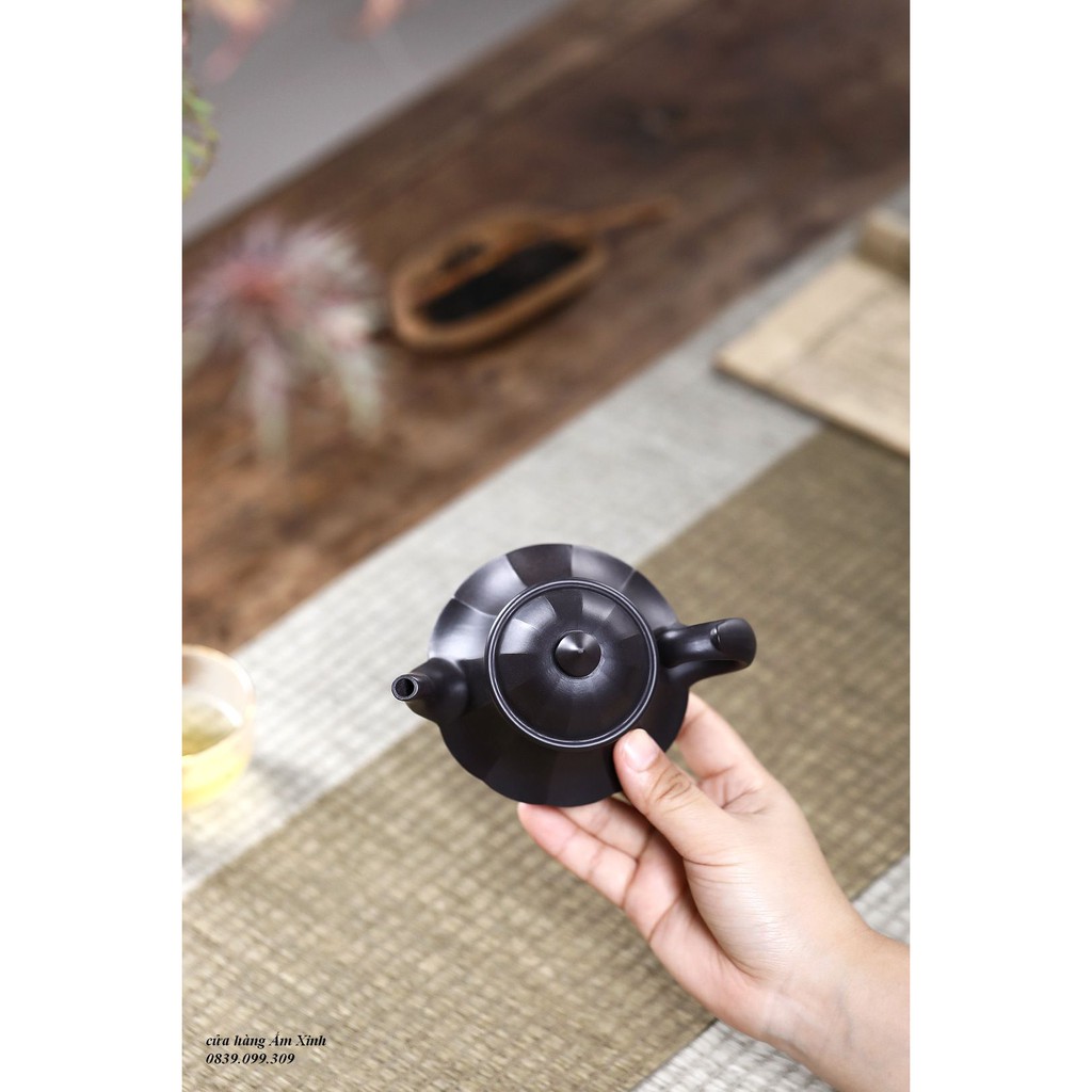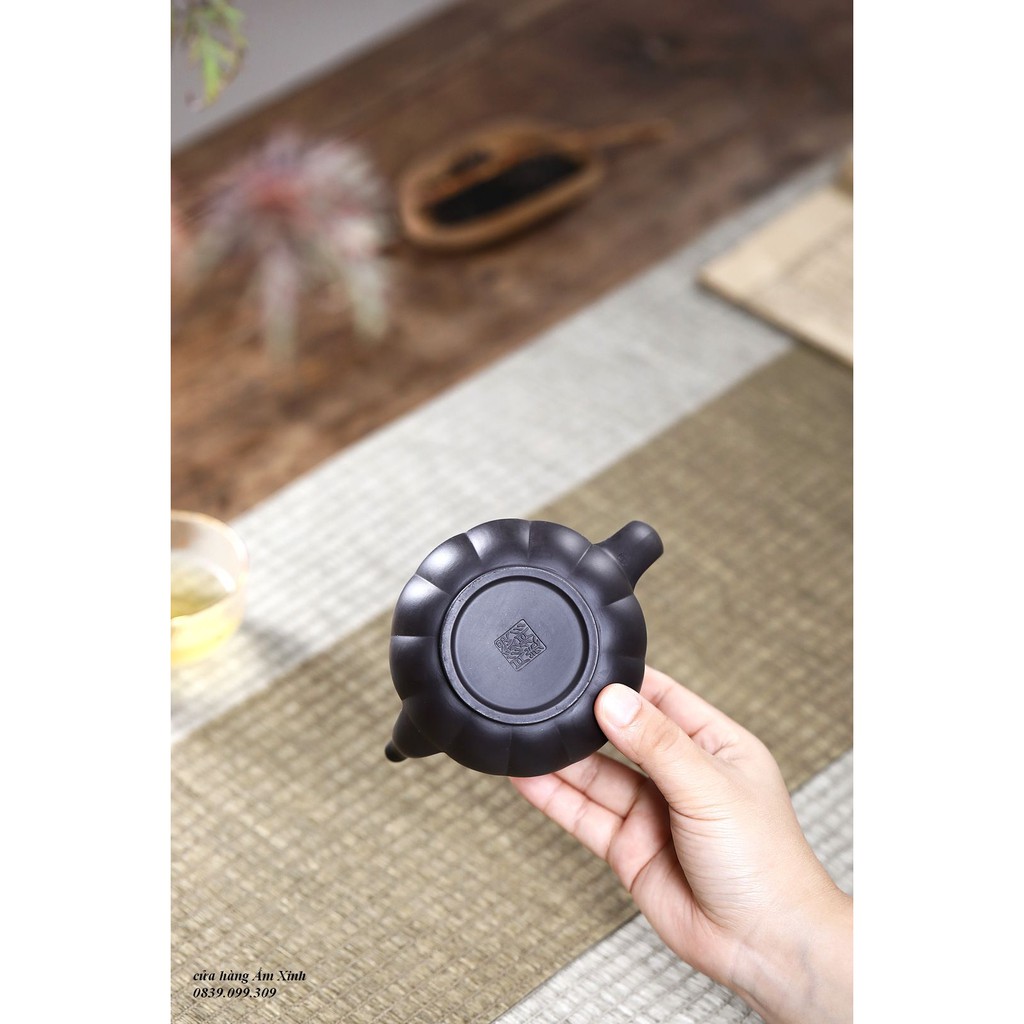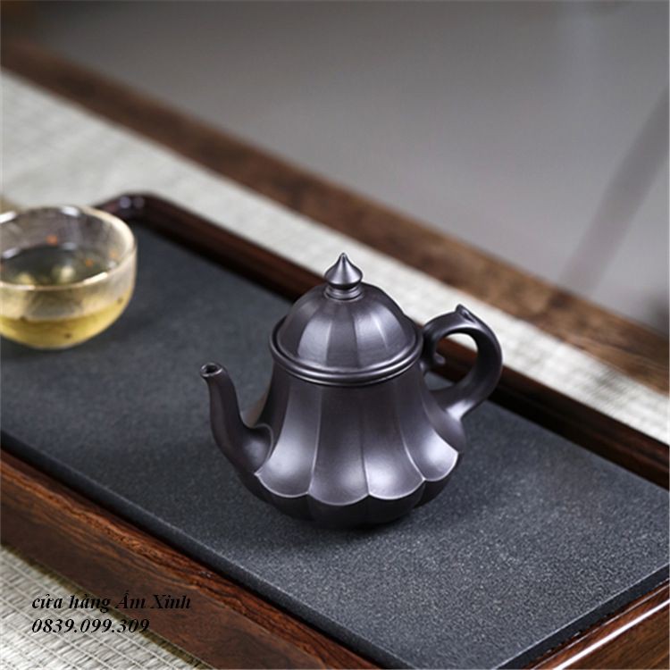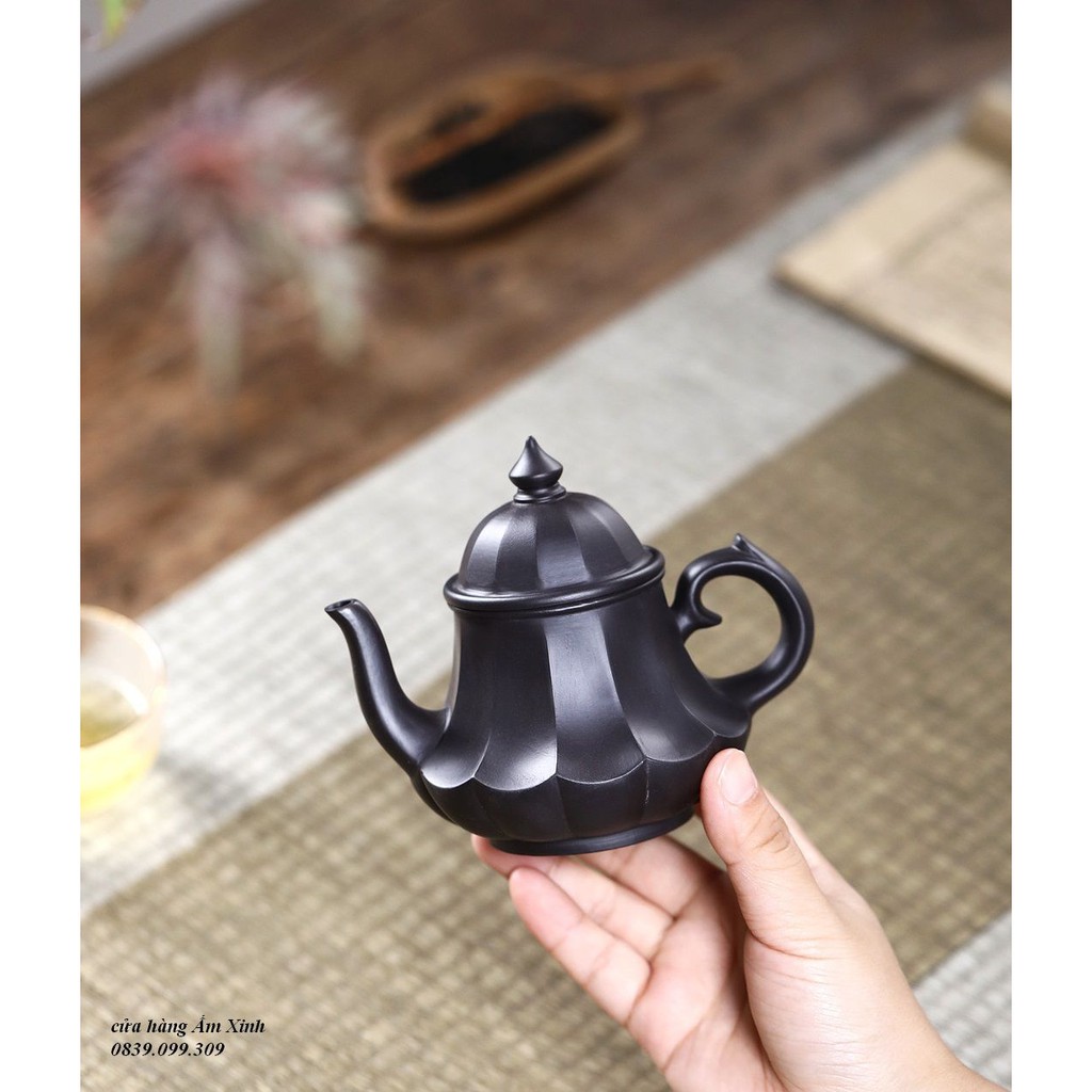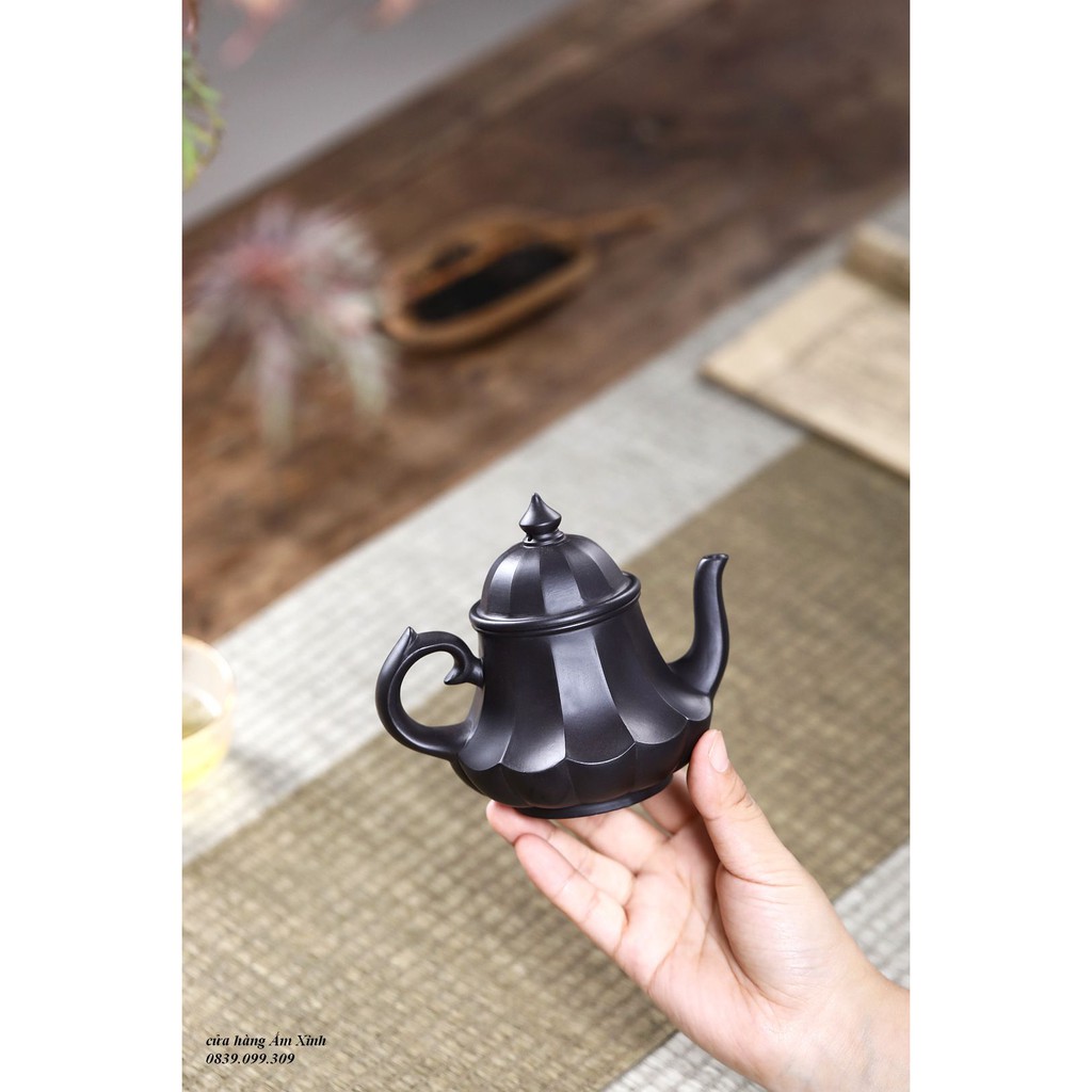 Ấm Tử Sa Nghi Hưng Cân Văn Liên Đăng 220 ml (Hắc Nê)+ Ấm đẹp, chất đất đanh, mầu ấm tươi y như hình ảnh, vòi nước dòng chảy tốt.