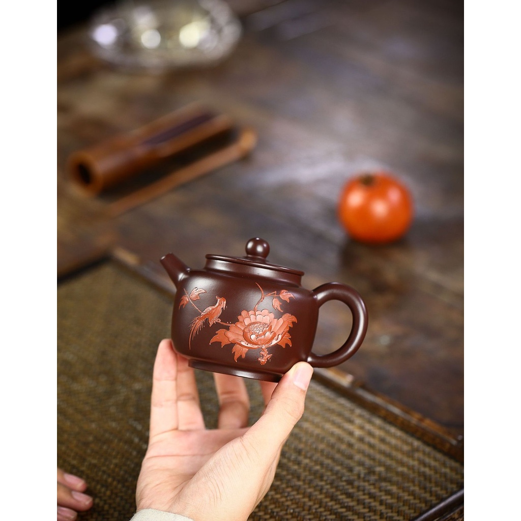 Ấm Tử Sa Nghi Hưng Đức Chung Thiên Điểu 230 ml (Tử Chu Nê)+ Ấm đẹp, chất đất đanh, mầu ấm tươi, vòi nước dòng chảy tốt.