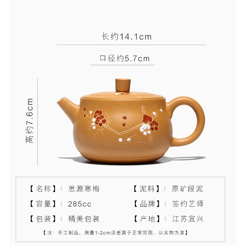 Giới thiệu Ấm Tử Sa Nghi Hưng Hán Ngõa Mai Hoa 275 ml (Đoạn Nê)